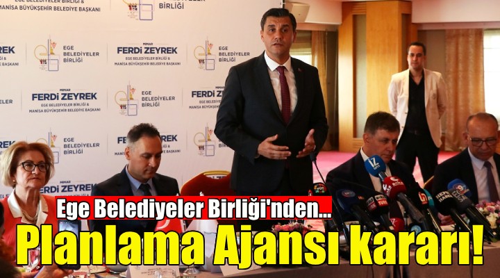 Ege Belediyeler Birliği Başkanı ve Manisa Büyükşehir Belediye Başkanı Ferdi Zeyrek, İzmir'de birliğin yaptığı çalışmalara ilişkin basın toplantısı düzenledi. Toplantıda İzmir Büyükşehir Belediye Başkanı Dr. Cemil Tugay ve Ege Belediyeler Birliği'ne bağlı belediye başkanları yer aldı. Başkan Ferdi Zeyrek, Ege Bölgesi'ndeki belediyelerin ortak paydada buluşacağı ve sorunlara ortak çözümlerin üretileceği Ege Planlama Ajansı'na ilişkin bilgilendirmede bulundu. Başkan Tugay ise “Amacımız gerçekten bölgemizin sorunlarına çözüm ürettiğimiz ve geleceğe bölgeyi birlik bütünlük içinde hazırladığımız bir süreci yürütmek” dedi.