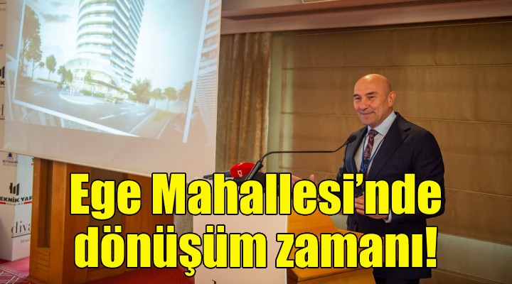 İzmir Büyükşehir Belediyesi kentsel dönüşüm projelerini sürdürüyor. Birinci etap çalışmalarına başlanan Ege Mahallesi Kentsel Dönüşüm Projesi’nde ilk etabın yüklenicisi Durbay Grup Ortaklığı’nın, yüklenici payı olarak tanımlanan bağımsız bölümlerinin tanıtım toplantısı yapıldı. Mövenpick Hotel'deki toplantıya katılan İzmir Büyükşehir Belediye Başkanı Tunç Soyer, sözlerine kentsel dönüşüm çalışmalarının ilkelerine değinerek başladı. Başkan Soyer, “İzmir için kangren diyebileceğimiz, en sıkıntılı ve zor bir alan dönüşüme uğruyor. Bu her türlü takdirin üzerinde. İzmir’in geleceği için çok değerli bir adım. İzmir’in insanca ve doğayla uyumlu dönüşümünde yeni bir sayfa açılmış oluyor. Ege Mahallesi’nde nihayet dönüşüm başlıyor. O nedenle çok gururluyum ve mutluyum” dedi.