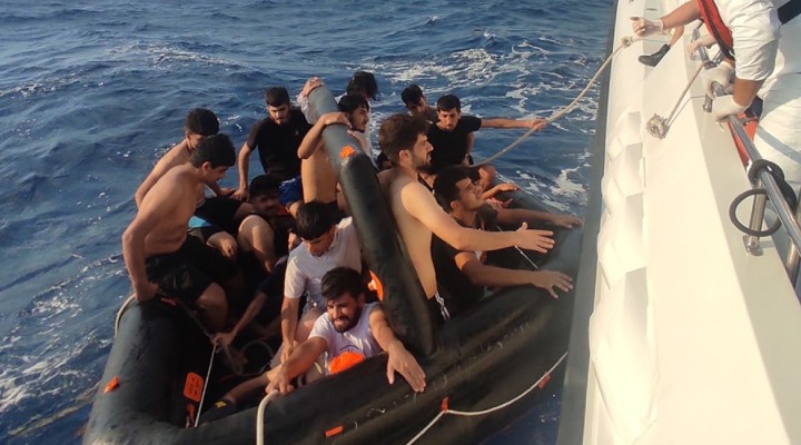 Yunanistan unsurlarınca Türk kara sularına itildiği tespit edilen lastik bottaki 51 kişi kıyıya getirildi.