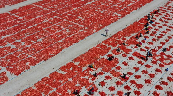 Ege Bölgesi'nde yetişen ve güneşte kurutmaya bırakılan domatesler 60'ın üzerinde ülkeye ihraç ediliyor. Nisan ayında ekimi, temmuzda ise hasadı yapılan domatesler kamyonlarla kurutulacağı geniş ovalara getiriliyor. Sabah gün doğumuyla başlayan domates mesaisinde işçiler, toprak zemin üstüne serilmiş beyaz örtüyle kaplı alana giriş yapıyor. Beyaz örtü üzerine dağıtılan domatesleri tek tek ortadan ikiye kesen işçiler, serme işlemini de gerçekleştiriyor. Müşterinin talebine göre kükürt ve tuz serpilen domatesler yaklaşık 1 hafta bekletildikten sonra paketlenmek üzere fabrikalara gönderiliyor.