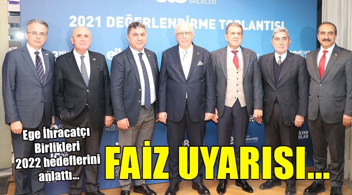 Birlik başkanları sektörlerine yönelik sıkıntıları ve talepleri anlatırken EİB Koordinatör Başkanı Jak Eskinazi sanayicilerin krediye ulaşmada sıkıntı çektiklerine vurgu yaptı. Ege Bölgesi'nin 2021 yılı ihracatının önceki yıla göre yüzde 29'luk artışla 21,8 milyar dolardan 28,1 milyar dolara çıktığını belirten Eskinazi, 2022 hedeflerinin yakalanabilmesi için Merkez Bankası tarafından sağlanacak kredileri işaret etti.
