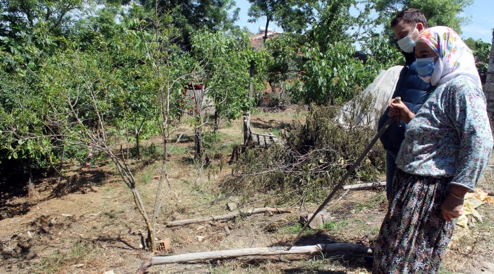 Bu sırada bahçede bulunan sürücünün eşi Sultan Çakan, tel örgülere de çarpan traktörün altında kaldı.