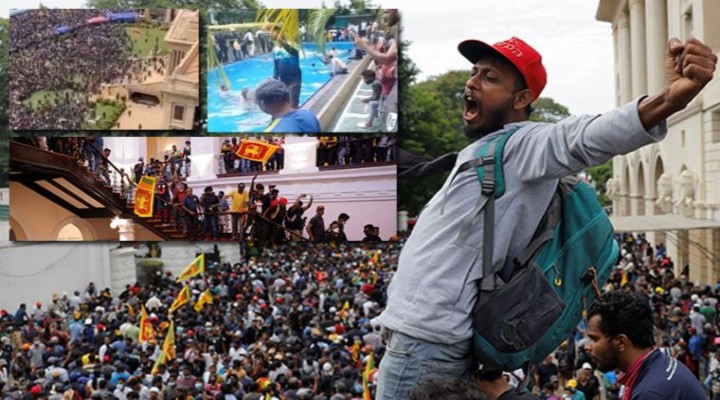 Sri Lanka medyasındaki haberlere göre, ekonomik krizle boğuşan halk başkent Kolombo'daki Başkanlık Sarayı'nı bastı. Güvenlik güçleri, başkanlık sarayına giren protestocuları dağıtmak için havaya ateş açtı.