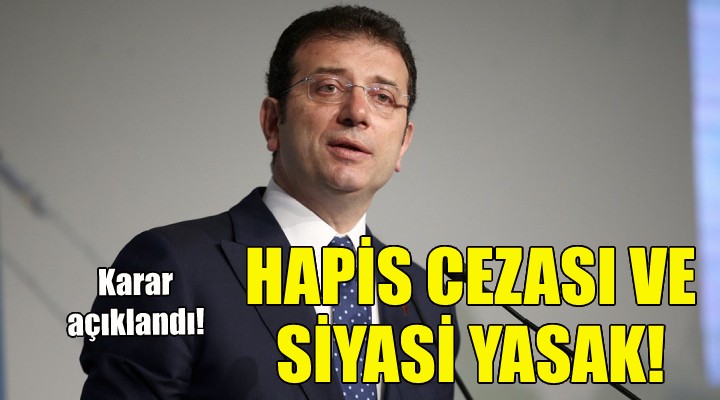 İmamoğlu hakkında 2 yıl 7 ay 15 gün hapis cezası verildi. Öte yandan siyasi yasak anlamına gelen 53. maddenin uygulanmasına da karar verildi.