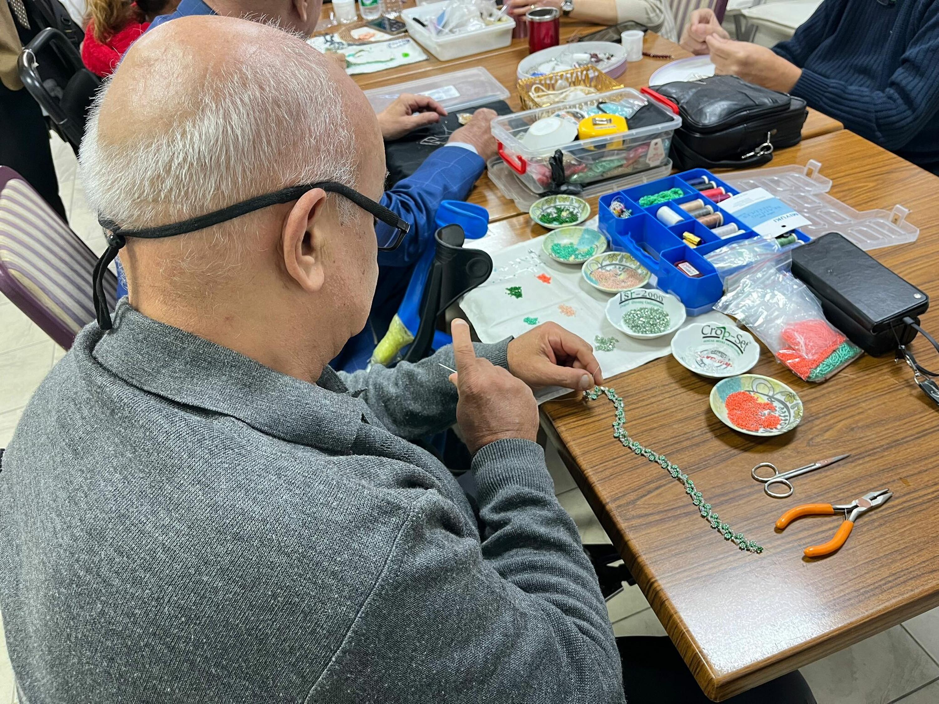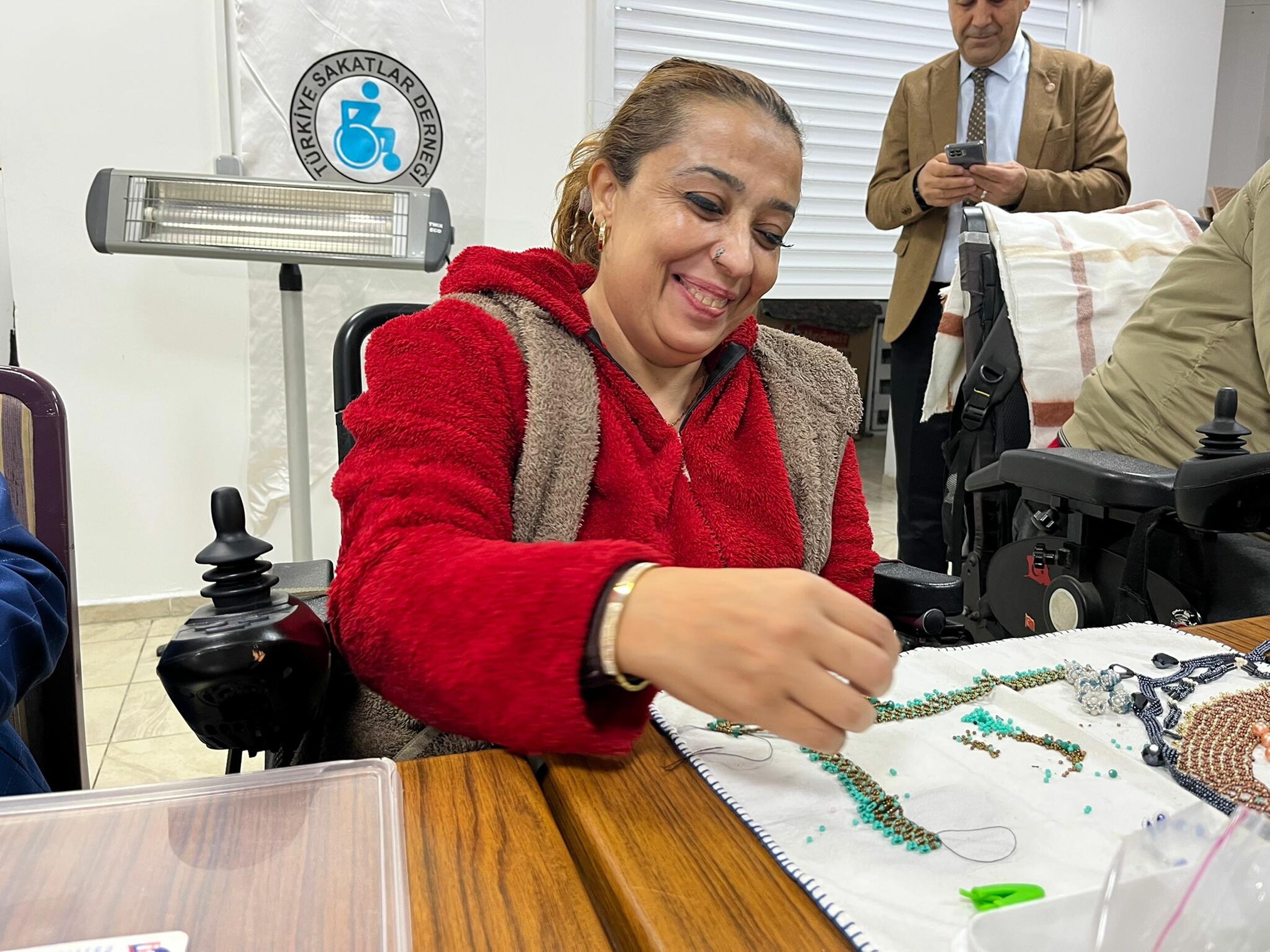 Kas hastalığı olan ve musküler distrofi tanısı nedeniyle tekerlekli sandalye kullanan Murat Yıldırım (54) da "12 yıl önce bocce sporu yaparken Metin Çınar ile tanıştık. Takı tasarım kursuna geldim ve ilk kez boncuk alıp, işleme yaptım. Bileklik, kolye gibi pek çok ürün yapabiliyorum. Aile bütçesine de katkı sağlamaya çalışıyoruz. İlk bakışta boncuk işlemek sıkıcı gibi geliyor ama yapmaya başladığınızda hem el becerisi gelişiyor hem de insanı sakinleştiriyor. Öğretmenimiz bize büyük bir sabırla öğretti. Bu kadarını yapabileceğimi ben de bilmiyordum" dedi.
