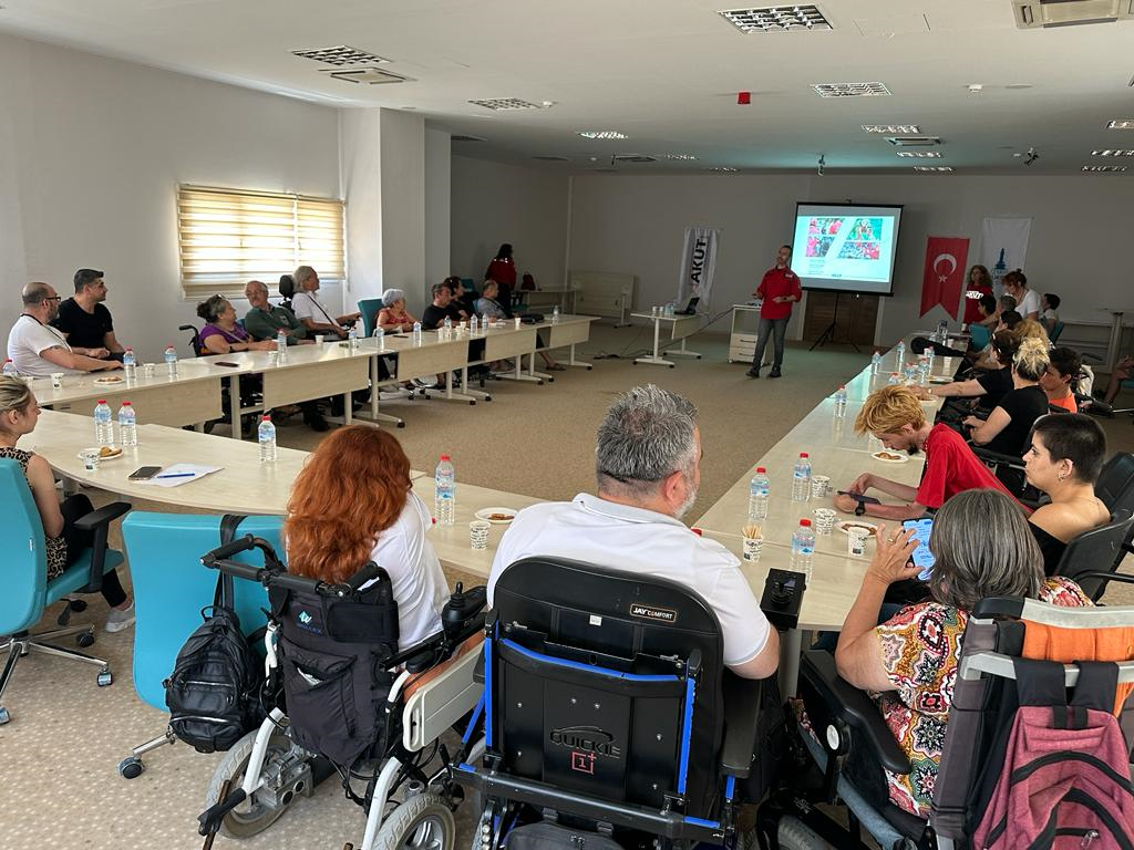 “Başka bir engelli politikası mümkün” sloganıyla engelsiz bir kent için çalışan İzmir Büyükşehir Belediyesi, “İncinebilir Gruplara Yönelik Afet Bilincinin Geliştirilmesi” başlığı altında İRAP (İl Risk Azaltma Planı) eğitimlerine başladı. “Afet Bilinci ve Engelli Farkındalığı Eğitimleri” çalışmaları kapsamında eğitim gören Engelsizmir Şube Müdürlüğü ekipleri, engelli yurttaşlara ve yakınlarına yönelik “Afet Bilinci”, afet müdahale ekiplerine yönelik “Engellilere Yaklaşım ve Tahliyede Dikkat Edilecek Unsurlar” ve mahalle afet gönüllülerine yönelik “Engelli Farkındalığı” konularında uzmanlaştı. İlk eğitim AKUT işbirliği ile ortopedik engellilere yönelik olarak Örnekköy Sosyal Projeler Yerleşkesi’nde 30’a yakın katılımcı ile yapıldı.