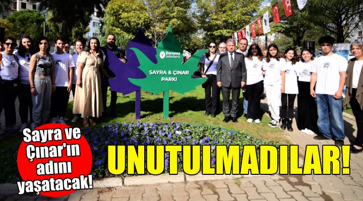 Kazımdirik Mahallesi'ndeki parka isim verilmesi nedeniyle düzenlenen törene Bornova Belediye Başkanı Dr. Mustafa İduğ, ikizlerin annesi Tülin Batmaz, babası Alican Alpgündüz ve arkadaşlarıyla birlikte yaptı. Parka Sayra ve Çınar Parkı ismi, ikizlerin 4 yıl önce enkazdan çıkarıldıkları gün olan 2 Kasım’da verildi. Çocuklar için çeşitli etkinliklerin de gerçekleştirildiği törende bir konuşma yapan Bornova Belediye Başkanı Dr. Mustafa İduğ, Sayra ve Çınar’ın da hayatlarını yitirdiği 3 yıl önceki İzmir Depremi’nde 117 kişinin vefat ettiğini hatırlattı.
