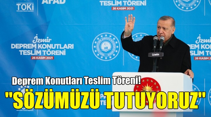 ''Sözlerimin hemen başında İzmir depreminde hayatını kaybeden 117 vatandaşımızı bir kez daha rahmetle yad ediyorum, ailelerine başsağlığı diliyorum. Depremin ilk anından itibaren sadece İzmir'in acısını paylaşmakla kalmadık, dertlerini çözecek adımları da attık. Ülkemiz en etkin, en hızlı afet müdahale planına sahiptir. Dakikalar içinde arama kurtarma, saatler içinde yardım faaliyetini başlatabiliyoruz. İzmir'de de bu mekanizmayı başlattık. Depremzedelerin yaralarını sarmak için gece gündüz çalıştık, çabaladık. Kimseyi açıkta, çaresiz bırakmadık.