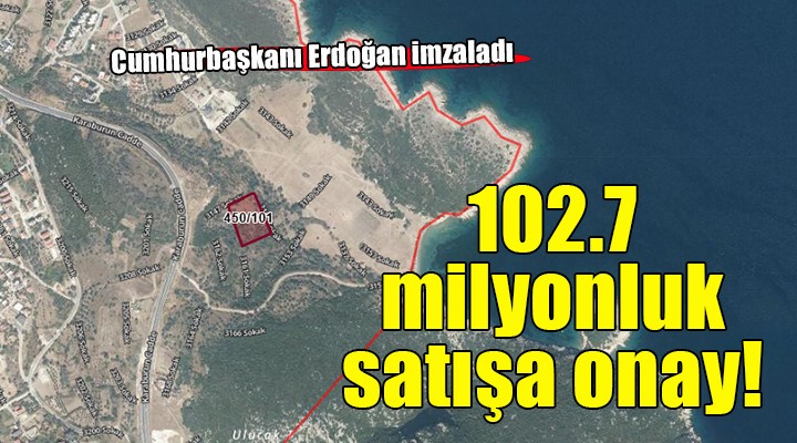 SONKALEİZMİR-Cumhurbaşkanı Recep Tayyip Erdoğan'ın imzasıyla yayımlanan kararname ile İzmir'in Karaburun ilçesine bağlı Saip Mahallesi'ndeki 450 ada 101 parselin satışı tamamlandı.