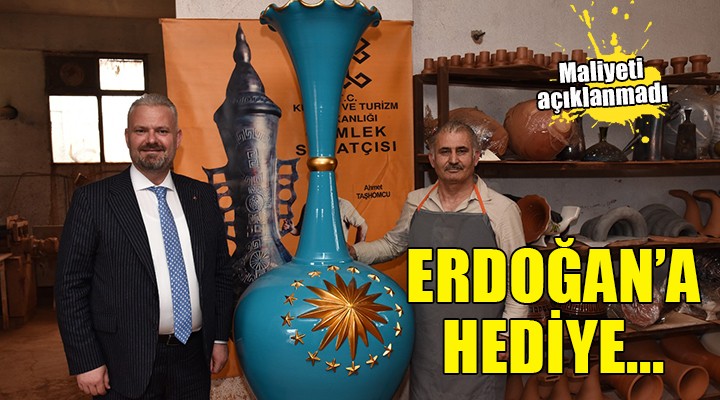 Menemen’de 45 yıldır çömlekçilik yapan Ahmet Taşhomcu'nun 200 kilo çamurdan yaptığı 2 buçuk metrelik vazo Cumhurbaşkanı Recep Tayyip Erdoğan'a hediye edilecek. Vazonun Erdoğan'ın sevdiği turkuaz renkte olduğunu belirten Menemen Belediye Başkanvekili AK Partili Aydın Pehlivan şöyle konuştu: