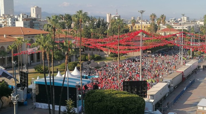 Bu arada Cumhuriyet Alanı'na AK Partili Akdeniz Belediyesi'nin temizlik işleri bölümü çalışanlarının da kendilerine özgü iş kıyafetleriyle Cumhuriyet Alanı'na gelmeleri de dikkat çekti.