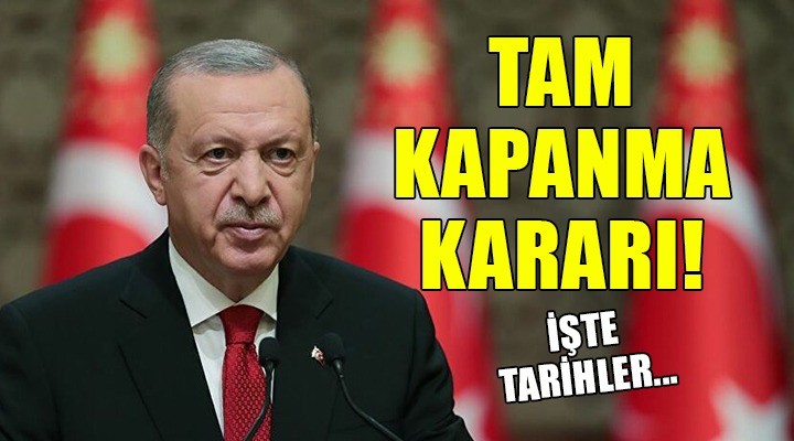 ''29 Nisan 2021 Perşembe akşamı saat 19.00'dan başlayıp, 17 Mayıs 2021 Pazartesi sabah 05.00'e kadar sürecek şekilde tam kapanmaya geçiyoruz. İçişleri Bakanlığı genelgesinde belirtilen istisna tutulan kuruluşlar hariç, tüm iş yerleri faaliyetlerine ara verecektir.