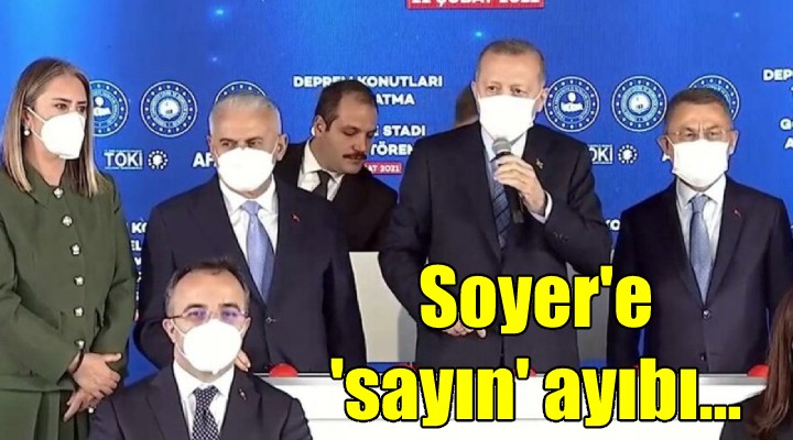 TOKİ başkanları ve genel başkan yardımcıları dahil tüm isimlere ‘Sayın’ ifadesi kullanılırken, İzmir Büyükşehir Belediye Başkanı Tunç Soyer’e kullanılmaması dikkat çekti. Sunumda yapılan takdimde bir kısım konuklara sosyal mesafe nedeniyle alt basamakta bulunmaları söylense de, sosyal mesafeye dikkat edilmediği görüldü.