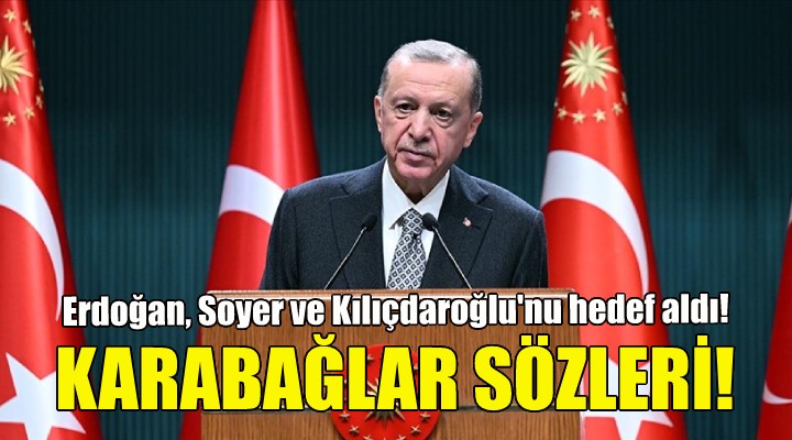 Erdoğan ''İzmir'in Karabağlar semti. Karabağlar'ın süratle kentsel dönüşüm ve değişime ihtiyacı var. Hadi bakalım İzmir'in belediyesi zatı şahanelerinde. Karabağları değiştirin, dönüştürün, bir adım atın. Hadi bakalım İzmir'in belediye zatı şahanelerinde, buralarda niye bir adım atmadınız? Orada yaşayanlar insan değil mi? Onların ideal konutlarda yaşamak imkanı yok mu? Büyükşehir belediye başkanına söyle yapsın, biz de alkışlayalım. Ama yok, onların öyle bir aşkı yok'' şeklinde konuştu.