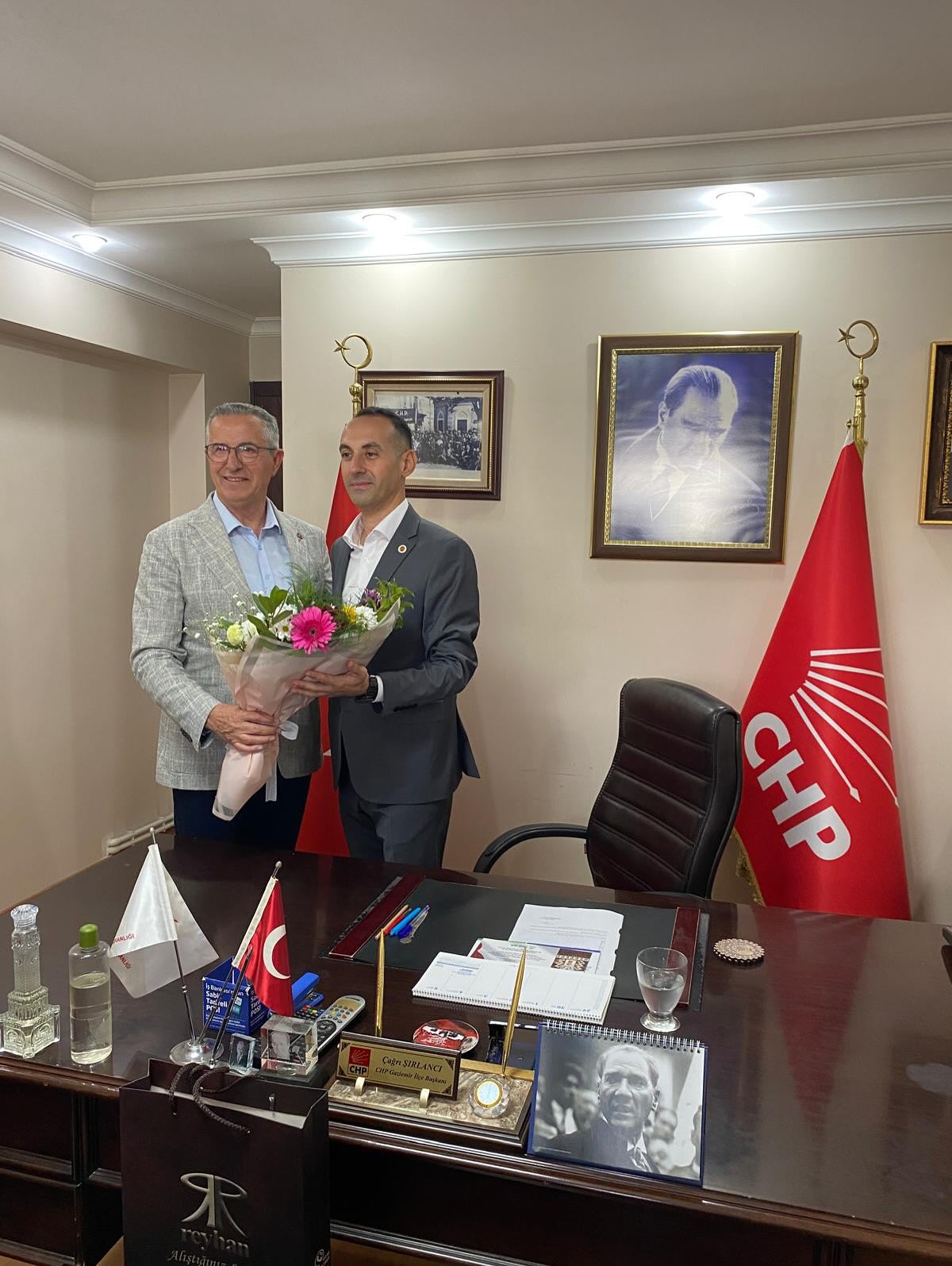 SONKALEİZMİR-Gaziemir'de geçen dönem önemli çalışmaları ile hatırlanan Eski Başkan Halil Arda CHP İlçe Başkanı seçilen Çağrı Şırlancı'yı ziyaret etti. Geçen dönem meclis üyeleri ve ilçe siyasetinde bilinen partililerin de yer aldığı ziyaret sıcak ve samimi bir ortamda gerçekleşti. Eski Başkan Arda ziyarete ilişkin, "CHP Gaziemir İlçe Başkanlığına seçilen genç kardeşim Çağrı Şırlancı ve Yönetim Kurulunu ziyaret ederek, başarılar diledik. Her şey çok güzel olacak" mesajını paylaştı.
