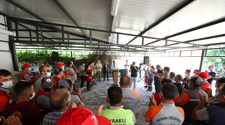 Ana binadan başlayarak tüm belediye birimlerini tek tek dolaşan Başkan Sandal, Zabıta, Sağlık İşleri, Park ve Bahçeler, Fen İşleri, Destek Hizmetleri ve Temizlik İşleri Müdürlüklerinde işçilerle bir araya geldi. Sandal, “Tüm felaketlerde Bayraklı Belediyesi olarak örnek bir çalışma sergiledik. Bayraklılılar adına size minnet ve şükran borcumuz var. Tüm çalışmalarınız ve emekleriniz için hepinize şükranlarımı sunuyorum. Teşekkür ediyorum” diye konuştu.