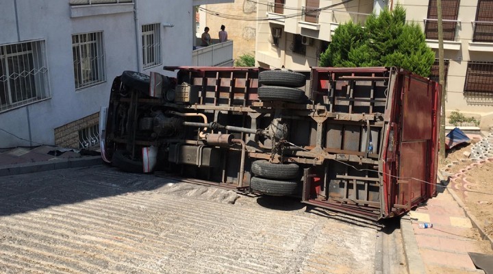Alınan bilgiye göre, bir nakliyat firmasına ait ev eşyası taşıyan Ali D'nin kullandığı 06 BJE 779 plakalı kamyon Murat Reis Mahallesi'nde rampa çıktığı sırada devrildi. Kazada yaralanan sürücü 112 Acil Servis ekiplerince İzmir Katip Çelebi Üniversitesi Atatürk Eğitim ve Araştırma Hastanesine kaldırıldı. Sürücünün sağlık durumunun iyi olduğu öğrenildi. Bu arada kamyondaki bazı eşyalar ili park halindeki bir aracın hasar gördüğü belirtildi.