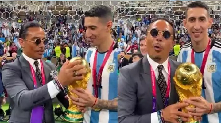 Nusret Gökçe, Fransa’yı yenmelerinin ardından sahaya girerek, Arjantinli futbolcularla fotoğraf çektirmiş, madalyayı ısırmış ve kupaya şaplak atmıştı.