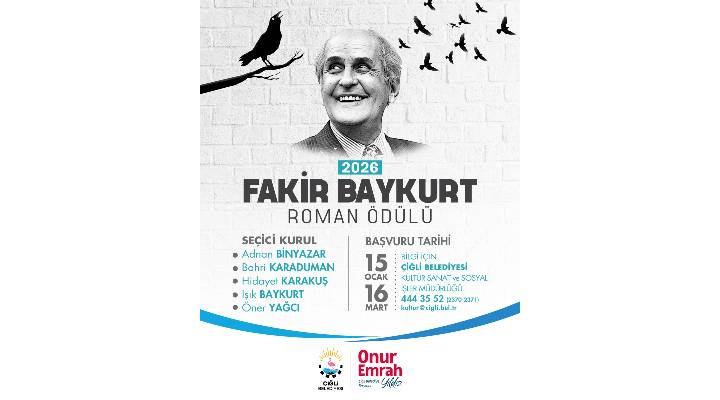 15 Ocak’ta başlayan başvurular, 16 Mart 2026 Pazartesi günü mesai bitimine kadar sürecek. Yarışmaya katılmak isteyenler, detaylı bilgi için Çiğli Belediyesi Kültür, Sanat ve Sosyal İşler Müdürlüğü’ne 444 35 52 (Dahili: 2370-2371) numaralı telefondan ulaşabilir. Başvuru dosyaları ise [email protected] e-posta adresi üzerinden iletilebilecek. Ayrıca 2026 Fakir Baykurt Roman Ödülü Şartnamesi’ne Çiğli Belediyesi’nin resmi internet sitesi üzerinden erişilebiliyor.