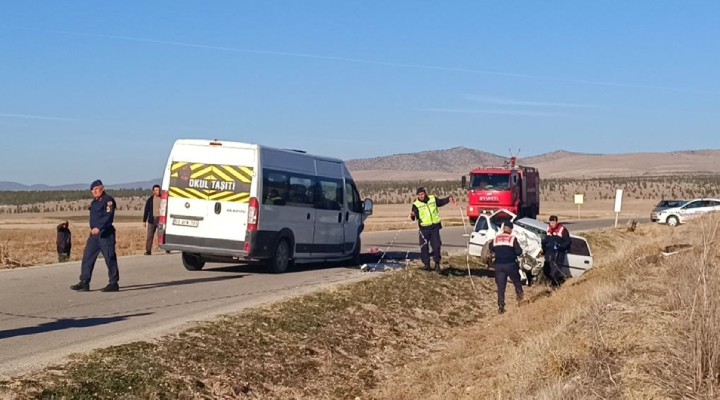 Sürücülerinin ismi henüz öğrenilemeyen 03 AFN 701 plakalı okul servis minibüsü, Alagöz köyü yakınlarında 20 AGS 934 plakalı otomobille çarpıştı. Şarampole devrilen otomobildeki, 5 kişi ağır yaralandı.