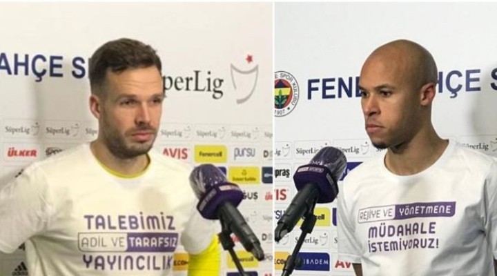 Sarı lacivertli oyuncular ve teknik direktör Erol Bulut, röportaja geçen hafta olduğu gibi "Be Fair (Adil Olun)" yazılı tişörtlerle çıktı.