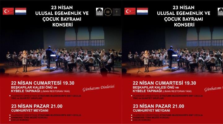 23 Nisan Pazar günü coşkunun doruğa ulaştığı Fener Alayının ardından saat 21.00’de Cumhuriyet Meydanında; Filarmoni Orkestrası Stratums Muziekorps Sint Cecilia, Harmonie Türk Müziği Korosu ve Çocuk Korosu konserleri müzik ziyafeti sunacak.