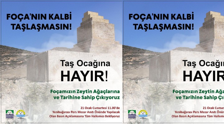 Bahçecik Mevkinde kurulmak istenen Taş Ocağını asla kabul etmeyeceklerini ifade eden Foçalılar, basın açıklaması yapmak için 21 Ocak Cumartesi günü saat 11.00’de Yenibağarası Pers Mezar Anıtı önünde buluşacak.