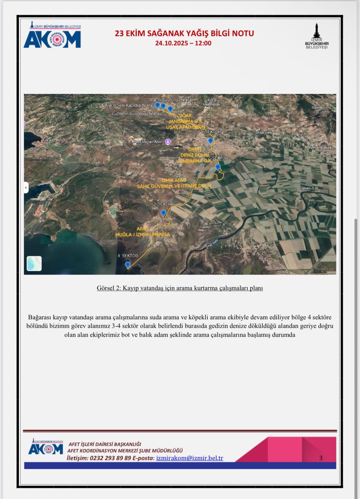 Foça'da kuvvetli sağanak yağışın ardından yaşanan sel felaketinde kaybolan Bülent Kaptanoğlu için arama kurtarma çalışmaları sürüyor. Jandarma Genel Komutanlığı, AFAD ve İzmir Büyükşehir Belediyesi'nin sürdürdüğü koordineli çalışmalarda arama kurtarma planı belli oldu.