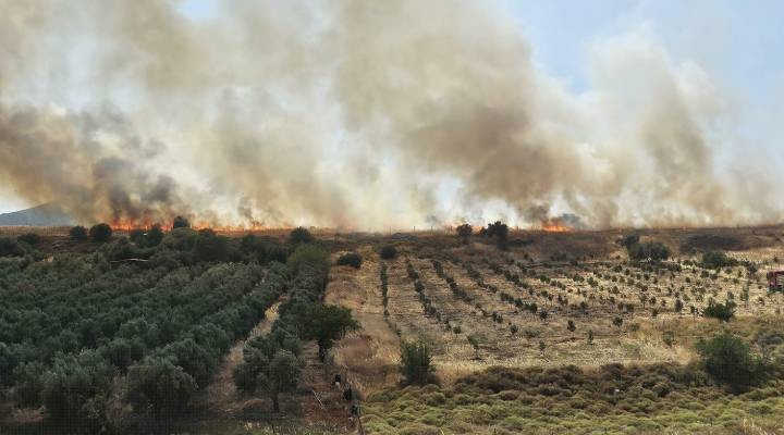 Foçaköy ile Foça Açık Ceza İnfaz Kurumu arasındaki otluk alanda, saat 14.00 sıralarında yangın çıktı. Alevler, maki ve zeytin ağaçlarıyla kaplı alana da sıçradı. Alevlere 3 helikopter, çok sayıda itfaiye aracı ve İzmir Orman Bölge Müdürlüğü'ne ait arazözle müdahale edildi. Havadan ve karadan müdahaleyle alevler, 2 saatte kontrol altına alındı. Soğutma çalışmaları sürerken, ilk belirlemelere göre 4 hektarlık alan zarar gördü. Yangını çıkış nedeninin araştırıldığı bildirildi..jpg)