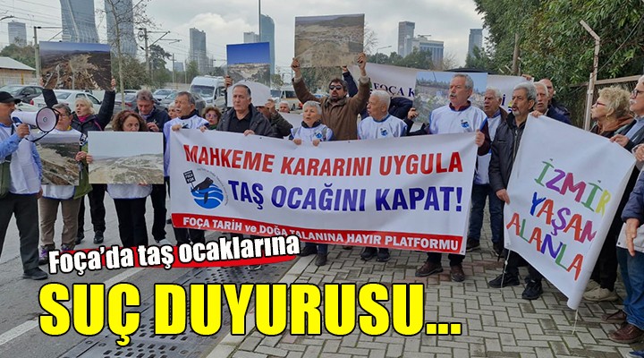 Platform Sözcüsü Ramis Sağlam imzasıyla yapılan suç duyurusunda “İzmir 4. İdare Mahkemesi'nin 2023/1175 E 2024/998 K ve 20223/1175 E 2024/992 K sayılı iptal kararları Foça ilçesi Kocamemetler köyünde faaliyet yürüten iki ayrı taş ocağına Bakanlık tarafından 2016 yılında verilen çed kapsam dışı kararlarına ilişkindir. Köy halkı ve çevrede yaşayan insanlar taş ocakları faaliyetinden hem insan sağlığı sorunları hem de tarımsal faaliyet anlamında çok etkilenmekte yüzlerce yıldır yetiştirilen zeytin ağaçları zarar görmektedir. Mahkeme; idarenin ÇED kapsam dışı kararlarının iptaline karar verirken taş ocaklarının bulunduğu alanda madencilik faaliyeti yürütmenin açıkça Zeytincilik Kanunu'na muhalefet ettiğini belirtmiştir. Türk Ceza Kanununda bu şekilde mahkeme kararlarını uygulamayarak kişilerin maddi manevi zarara uğramasına yol açan idare ve memurları için cezai sorumluluk öngörülmüştür. İzmir 4. İdare Mahkemesi tarafından ilçemizde insan sağlığına ve tarımsal faaliyete doğrudan zarar veren taş ocakları hakkında verilmiş olan ÇED KAPSAM DIŞI kararlarının gereğini yerine getirmeyerek maddi ve manevi zararın doğmasına neden olan tüm idari sorumlular hakkında görevi kötüye kullanma suçundan dolayı soruşturma başlatılarak cezalandırılmalarını talep ve rica ederim.” denildi.