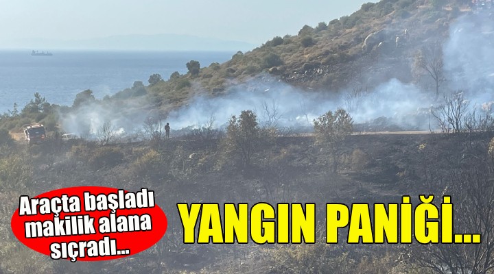 Günbatımı mevkisinde bir otomobilin motor kısmında çıkan yangın kısa sürede makilik alana sıçradı.