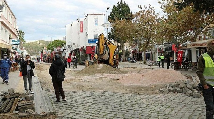 Foça ilçe merkezinde 19. yüzyıldan kalma yolda, belediyenin içme suyu ve kanalizasyon altyapısı için yürüttüğü yenileme çalışması için mevcut taşların sökülmesi tepkilere neden olmuştu.