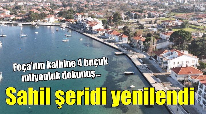 Yaklaşık 1 kilometrelik taşıt ve bisiklet yolu, yeşil alan hattı ve konforlu yürüyüş yollarının kazandırıldığı çalışmalarda kullanılan malzemeler, Foça’nın tarihi dokusuna uygun şekilde seçildi. Sahilde bulunan aydınlatma sisteminin de modern direklerle yenilendiği düzenlemenin ardından Foça’nın kalbi yeni bir görünüme kavuştu. İZBETON üretimi banklar ve çöp kutuları da sahil şeridi boyunca uygun yerlere yerleştirildi.