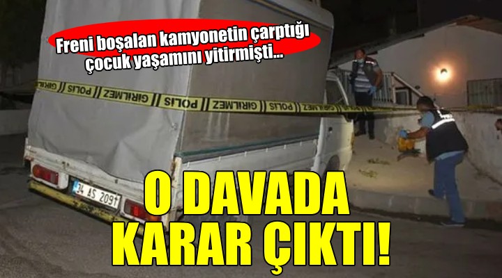 Sanık hakkında Karşıyaka 1. Asliye Ceza Mahkemesinde dava açılmıştı. Sanık, ifadesinde babasına ait kamyoneti evlerinin önüne nizami şekilde park ettiğini, el frenini çektiğini, hatta vitese taktığını ileri sürdü. Eve gittiğinde, 8-10 dakika sonra da büyük bir gürültü duyduğunu anlatan sanık, döndüğünde aracını park ettiği yerden yaklaşık 20-30 metre ileride çocuklara çarpmış şekilde bulduğunu söylemişti.