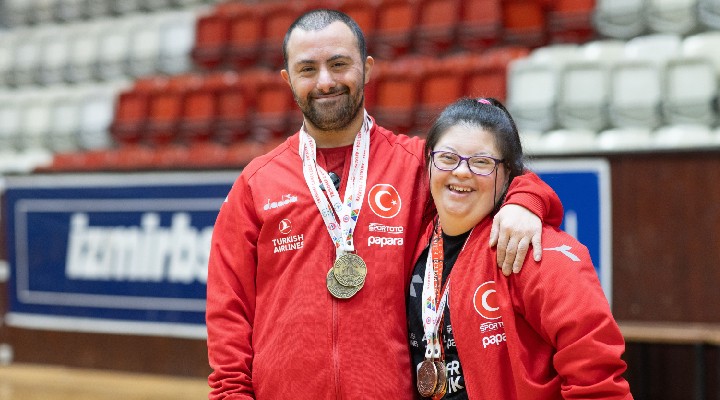 İzmir Büyükşehir Belediyesi Spor Kulübü’nün down sendromlu sporcuları Selin Durgut (23) ve Alper Öztürk (33) için kulüp yöneticileri tarafından özel bir tören düzenlendi. Kulüp Başkan Vekili Tuğçe Gülcüler, İzmir Büyükşehir Belediyesi Spor Kulübü olarak tüm yetenekli çocuklara imkân tanımayı amaçladıklarını belirterek “Bugün çok özel bir gün. Sevgiye doyduk. Alper ve Selin ile olmak bana umut ve sevgi verdi. Saf sevgiyi hissedebildiğimiz fazla an yaşamıyoruz. Bu anları yaşadığım için kendimi çok şanslı hissediyorum. İzmir Büyükşehir Belediyesi’nin sporcuları olması da bizim için ayrı mutluluk ve gurur meselesi” ifadelerini kullandı.