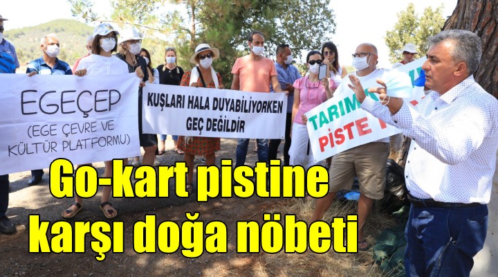 SONKALEİZMİR-Güzelbahçe Yelki Mahallesi'nde zeytin ağaçlarının bulunduğu alana yapılmak istenen go-kart pistine karşı doğa nöbeti başlatıldı. Güzelbahçe Belediye Başkanı Mustafa İnce, "Yelki'de mahkeme tarafından haklı bulunan mühürümüz kanunsuzca sökülerek kaçak inşaat çalışması girişiminde bulunulan zeytin ağaçlı tarla olan sözde go-kart pist alanında nöbetteyiz. Asfaltın doğa harikası zeytin ağaçlı tarım alanına dökülmesine karşı direniyoruz. Geleceğimizin teminatı çocuklarımız için nöbetteyiz. Kuşlar, flamingolar, kaplumbağalar, sincaplar, yaprak dökmeyen ağaç için nöbetteyiz. Geleceğimizi yok etmemeleri için nöbetteyiz. Biz buradayız Go-Kart yapılmaması için gereken tüm mücadeleyi göstereceğiz" dedi.