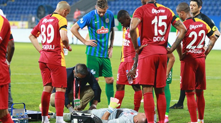 Çaykur Didi Stadyumu'nda oynanan mücadelenin 15'inci dakikasında Rizesporlu Skoda'nın vuruşunu kurtaran Muslera, rakibiyle çarpıştıktan sonra yerde kalarak sakatlık yaşadı. Yedek kulübesinde bulunan kaptan Selçuk İnan, hakemden izin isteyerek tribünden sahaya girip Muslera'nın yanına gelirken, tecrübeli kaleci için ambulans çağrıldı. Muslera, sahada yapılan ilk müdahalenin ardından da ambulansla hastaneye götürüldü.
