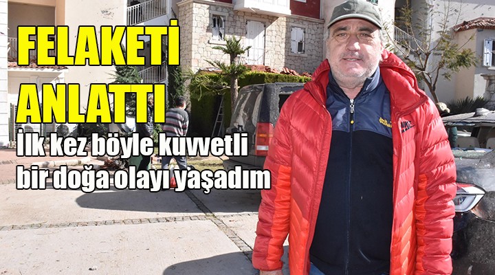 Alaçatı’da 6 yıldır yaşayan ve hortuma şahit olan gazeteci Korcan Karar o anları DHA’ya anlattı “Dün akşam saat 21.20'de evde oturduğumuz sırada bir uğultu sesi duyduk. Daha sonra giderek yükselen ve hiç alışık olmadığımız bir rüzgâr sesi duyuldu. Uğultuyla karışan bu sesi kapalı evin içinden hissettik. Gazetecilik refleksiyle hemen dışarıya çıktım. Hava yağmurluydu, baktım şimşek çakıyor. Etraf da aydınlanınca hortumu hissettim. Arkasından geldiği yöne baktım. Alaçatı Port'un 750 metre ilerisinde oturuyorum. Hemen arabama bindim. Görüntüleri çektim. Gece, yaşananların vehametinin farkında olamadık.“Bir şantiyede vinç devrildi. Yaralılar vardı. 18 yaralının 6’sı taburcu edildi. 12’sinin tedavisi devam ediyor. Sonra Alaçatı Port'a geldim. Tekneler batmış, araçlar devrilmişti. Aslında, dün akşam bir felaket yaşadık. Herkese geçmiş olsun diliyorum.”