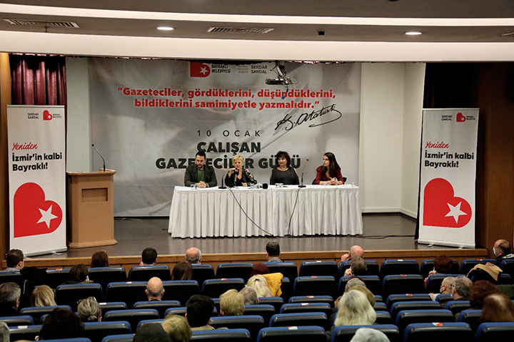 Tepekule Kongre ve Sergi Salonu’nda gerçekleşen panele İzmir Gazeteciler Cemiyeti Başkanı Dilek Gappi, Gazeteci- Yazar Barış İnce, Gazeteci- Yazar Yazgülü Aldoğan ve Gazeteci Çağla Geniş katıldı. Gazetecilerin yaşadığı sorunlar, sansür ve medya organları üzerinde uygulanan baskı ve Basın Özgürlüğü kavramının konuşulduğu panele vatandaşlar da yoğun ilgi gösterdi. Panele Bayraklı Belediye Başkanvekili Kıyasettin Aydemir, CHP Bayraklı İlçe Başkanı Necati Şahin, ilçe yönetimi, meclis üyeleri, muhtarlar, gazeteciler ve çok sayıda Bayraklılı katıldı.