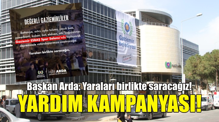 Sosyal medya hesabı üzerinden kampanyayı duyuran Gaziemir Belediye Başkanı Halil Arda, “Değerli Gaziemirliler, acımız büyük. Battaniye, ısıtıcı, uyku tulumu, çocuk bezi, powerbank, kaban, bot, eldiven, atkı bağışlarınızı Gaziemir ESBAŞ Spor Salonu’nda toplayarak depremzede vatandaşlarımıza ulaştıracağız. Yaraları birlikte saracağız” dedi.
