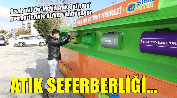 Gaziemir Belediyesi, ilçenin birçok noktasına yerleştirdiği geri dönüşüm kumbaraları, işletmelere ve sitelere dağıttığı ambalaj atığı toplama kutularıyla geri dönüştürülebilir ambalaj atıklarının ekonomiye kazandırılmasını sağlıyor. Sıfır atık ve temiz bir doğa hedefiyle çalışmalarını yürüten belediye, bu konuda yeni bir çalışmayı yaşama geçirdi. Yurttaşların atıklarını kolayca geri dönüşüm endüstrisine kazandırmaları için kentin ihtiyaç duyulan noktalarına Mobil Atık Getirme Merkezi üniteleri konuldu.