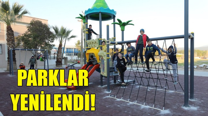 Gaziemir Belediyesi’nin yürüttüğü çalışmalar kapsamında eskiyen parklarda yenileme yapıldı. Parklarda yürütülen çalışmalar kapsamında kullanılamaz durumda olan oyun ve spor grupları yenilendi, oyun ve spor alanlarının zemini kauçuk kaplandı. Çalışmaların tamamlanmasıyla parklar daha konforlu ve güvenli oldu.