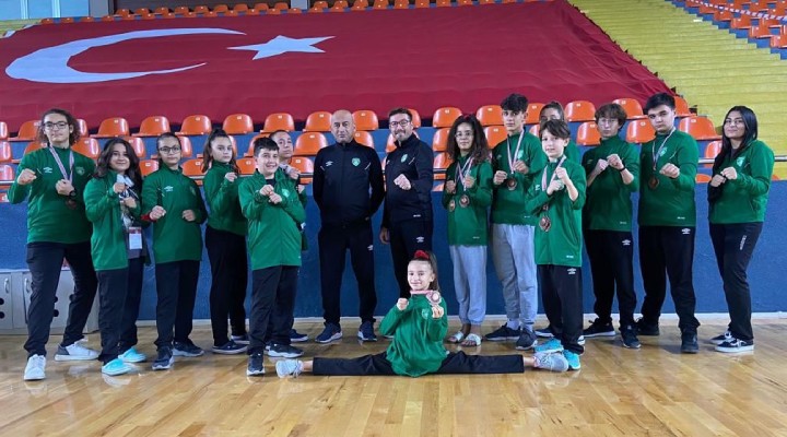 Ankara’da düzenlenen ve 204 spor kulübünden yaklaşık bin 200 sporcunun katıldığı Türkiye Taekwondo Poomsae Şampiyonası’nda madalyaları toplayan taekwondocular, yeşil beyaz renkleri taşıyan formalarıyla şampiyonluk kürsüsünde yerini aldı.
