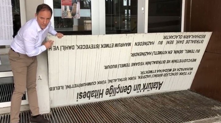Zonguldak Valiliği'nin binasının dış cephesinde yer alan ve birkaç yıl önce "onarım" gerekçesiyle kaldırılan Mustafa Kemal Atatürk'ün Gençliğe Hitabesi'nin nereye taşındığı, nisan ayında Türkiye Büyük Millet Meclisi'nin gündemine getirilmişti.