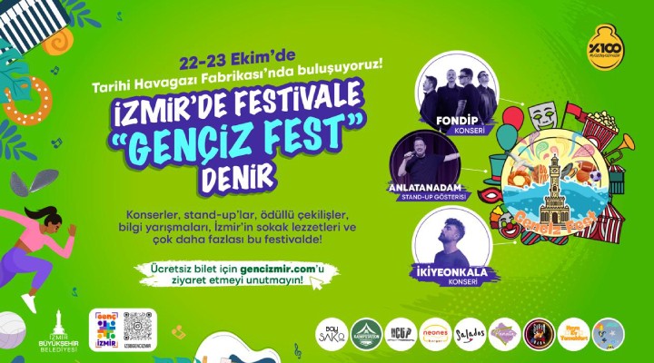 İzmir Büyükşehir Belediyesi Gençlik ve Spor Hizmetleri Dairesi Başkanlığı Gençlik Çalışmaları Şube Müdürlüğü tarafından organize edilen, İzmir’e ilk kez gelecek 18-30 yaş arası gençler ile İzmir’de yaşayan gençleri buluşturma amacı taşıyan Gençİz Fest 2024 Tarihi Havagazı Fabrikası'nda düzenlenecek. 22-23 Ekim 2024 tarihlerinde yapılacak iki günlük festival kapılarını saat 16.00’da açıp gece 00.00’a kadar eğlenceli zaman geçirmek isteyen gençleri ağırlayacak.
