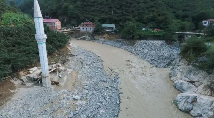 Giresun'da selin izlerinin silinmesi ve kayıp 7 kişinin arama çalışmaları sürerken, Espiye ilçesi Soğukpınar beldesinde, sel sularına dayanamayarak yıkılan camiden geriye sadece minaresi kaldı.