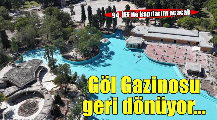 İzmir Büyükşehir Belediyesi, sahnesinde ağırladığı sayısız sanatçı, doğa içindeki eşsiz yapısı ve unutulmaz anılarıyla kent ve ülke tarihinde iz bırakan Kültürpark Göl Gazinosu’nu yeniden İzmirlilerle buluşturmak için gün sayıyor. İzmir 1 Numaralı Kültür Varlıklarını Koruma Bölge Kurulu'nun onayı alınarak İzmir Büyükşehir Belediyesi Yapı İşleri Dairesi Başkanlığı tarafından yaklaşık iki yıl önce başlatılan yenileme çalışmalarında sona gelindi. Yeniden inşa edilen Göl Gazinosu binası ve alanı tamamlayan yapay gölette son düzenlemelere geçildi. Tesis, 29 Ağustos – 9 Eylül arasında yapılacak 94. İzmir Enternasyonal Fuarı’nda (İEF) kapılarını açacak.
