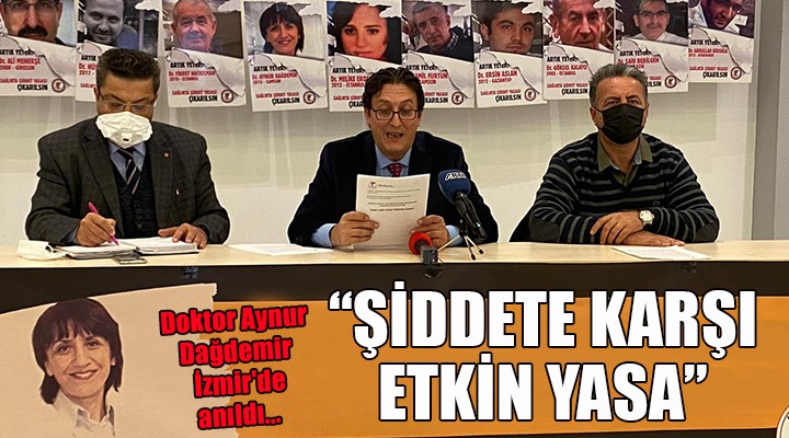 "Doktor Aynur Dağdemir, çalıştığı özel hastaneye elinde ekmek bıçağı ile giren erkek tarafından altı yıl önce bugün öldürüldü. Dr. Edip Kürklü’yü, Dr. Göksel Kalaycıoğlu’nu, Dr. Ersin Arslan’ı, Dr. Kamil Furtun’u, Dr. Hüseyin Ağır’ı, Dr. Fikret Hacıosman’ı da işyerlerinde uğradıkları şiddet sonrası kaybettik. Kayıplarımızın yanı sıra meslektaşlarımız işyerlerinde bıçaklı, silahlı, sopalı, oraklı, taşlı fiziksel saldırılara uğruyor, klinikler ateşe veriliyor. Her birimiz her gün sözel şiddete maruz kalıyoruz. Yalnızca 2020 yılında, 12 bine yakın beyaz kod verilen sağlıkta şiddet olayı yaşanmıştır. Yaptığımız ankette hekimlerin yüzde 84’ü daha önce hasta veya yakını tarafından sözel ve fiziksel şiddete uğradığını belirtmiştir. Tüm bunlara rağmen halen işyerlerimizde şiddetten koruyacak önlemler alınmazken, çıkarılan sağlıkta şiddet yasası algıyı yönetmeye çalışmak dışında bir işe yaramamıştır.