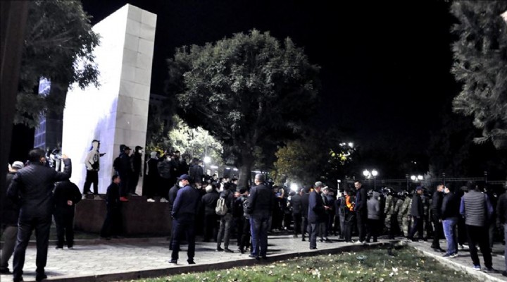 Merkez Seçim Komisyonu tarafından yüzde 7'lik seçim barajını aşmadığı bildirilen 12 parti taraftarı, seçim sonuçlarının iptal edilmesi talebiyle başkent Bişkek'teki Ala-Too Meydanı'nda protesto gösterisi düzenledi.