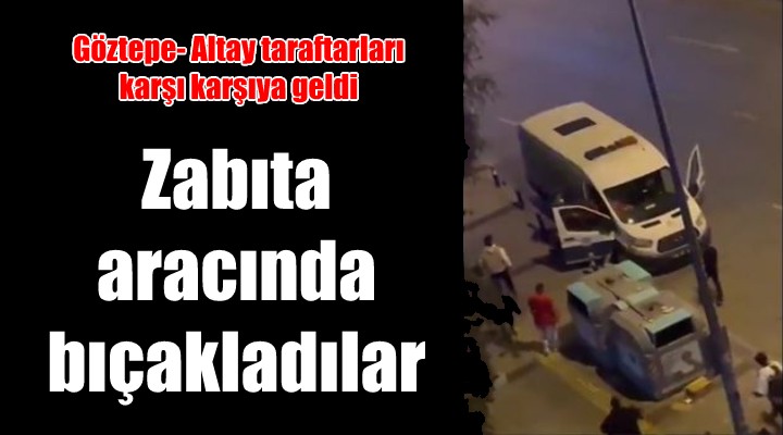 SONKALEİZMİR- Göztepe ile Altay arasında, Gürsel Aksel Stadyumu'nda oynanan ve çıkan saha olaylar nedeniyle yarım kalan maçın ardından şiddet durmuyor. 2'si çocuk 3 taraftarın yanı sıra Altay kalecisi Ozan Evrim Özenç'in de yaralandığı olaylı maç sonrası taraftar grupları arasındaki çatışma sokaklara taştı. Üçkuyular Meydanı'nda karşılaşan iki grup arasında kavga çıktı. Zabıta aracına sığınan bir Altay taraftarının Göztepeli grup tarafından bıçaklandığı görüntüler sosyal medyaya düştü.